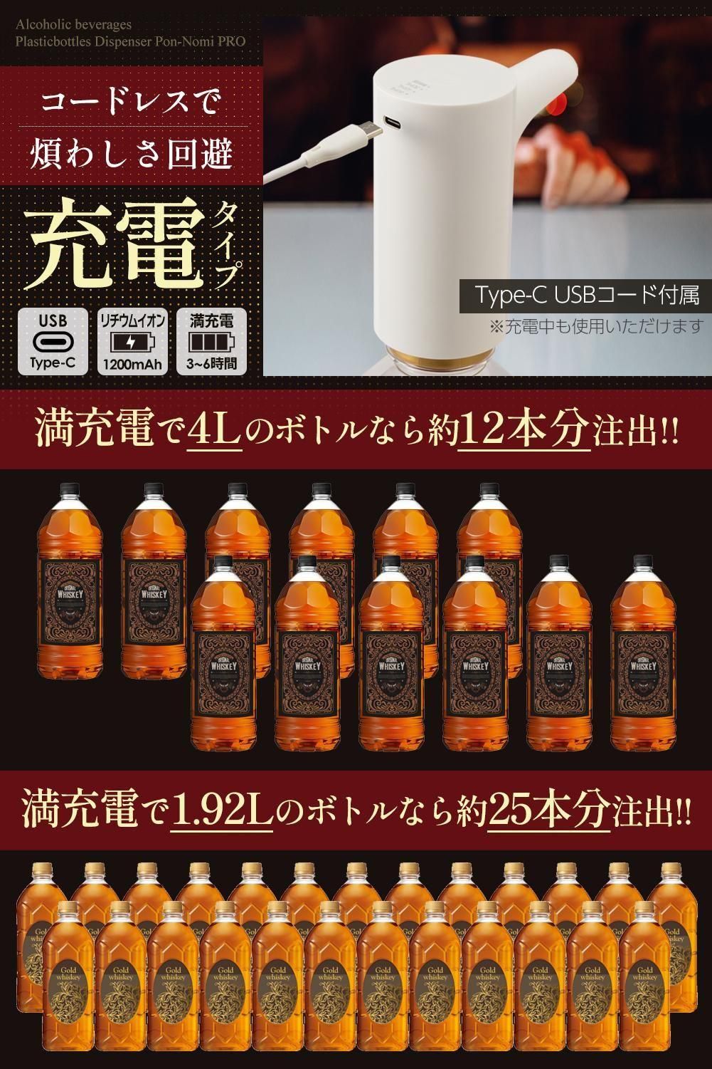 一度の満充電で4Lのペットボトルなら約12本も注出可能! 緊急の場合は、充電しながらでもご使用いただけます。